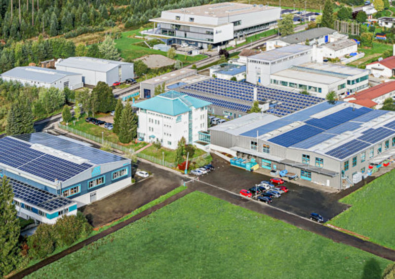 Die installierte Photovoltaikanlage auf den Gebäudedächern der Verwaltung und Produktion hat eine Leistung von 770 kW(Peak).