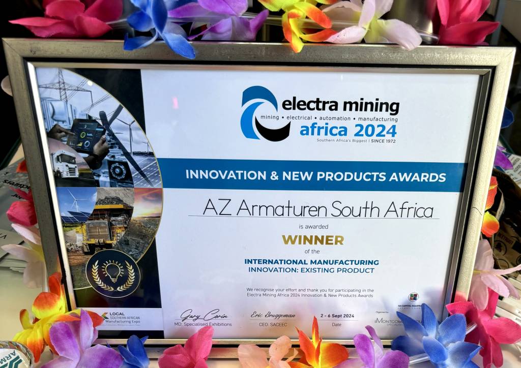 Vom 2. bis 6. September stellte AZ-Armaturen Südafrika auf der Electra Mining 2024 aus, wo das Team um Volker Knoth eine Auszeichnung für Innovation und neue Produkte erhielt. Gewinner war unser Low-Emission-Kükenhahn Typ FSN-EF. AZ Armaturen Südafrika verschenkte biologisch abbaubare Schlüsselbänder und „Garten in einer Box“ mit Gemüse-, Obst- und Kräuter-samen, welche die Besucher erfreuten. Die Veranstaltung war ein großer Erfolg, der neue Kundenkontakte und eine großartige Auszeichnung miteinander verband.