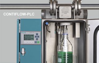 Der Inline-Probenahme-Kükenhahn Typ CONTIFLOW mit druckloser Probenahme bei definiertem Probevolumen kann auch mit Sensortechnik ausgerüstet werden. Bei Betätigung wird der Produktionsstrom weder unterbrochen, noch befinden sich den Durchfluss störende Elemente darin, wie es z. B. bei Probenahmeventilen der Fall ist.  Die Sensorik betätigt und überwacht vollautomatisch die Probeentnahme mit frei  programmierbaren Probemengen und/oder -zyklen. Eine Füllstandserkennung verhindert einen Überlauf der Probenflasche. Das PLC-System kann entweder manuell vor Ort bedient oder in die vorhandene Anlagenprogrammierung problemlos mit eingebunden und angesteuert werden.