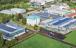 Die installierte Photovoltaikanlage auf den Gebäudedächern der Verwaltung und Produktion hat eine Leistung von 770 kW(Peak).